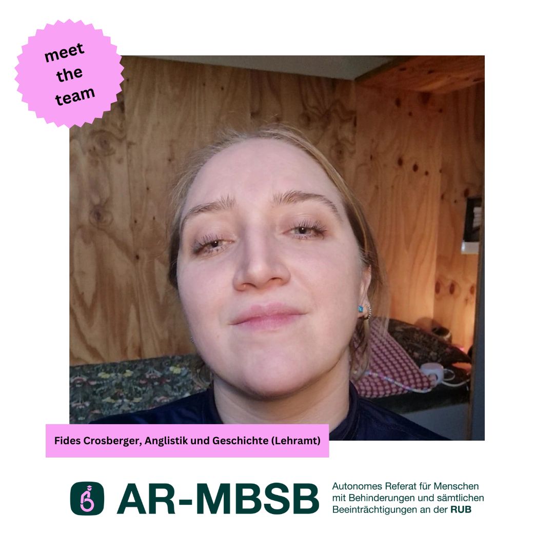 Ich bin Fides Crosberger und seit über einem Jahr interne Referatsleitung. Seit 2018 habe ich infolge eines Unfalls einen inkompletten Querschnitt. In meiner Arbeit ist mir besonders wichtig, dass Studierende mit Behinderungen sichtbar sind, ernst genommen werden und konkrete Unterstützung erfahren. Ich kümmere mich unter anderem um den Instagram-Account und bin regelmäßig beim Runden Tisch Inklusion vertreten, einem hochschulinternen Inklusionsgremium der Ruhr-Universität Bochum, in dem über Bedarfe, Strukturen und Verbesserungsmöglichkeiten rund um Inklusion gesprochen wird. Ein persönliches Ziel meiner Arbeit ist es, nicht nur auf akute Probleme zu reagieren, sondern langfristig dazu beizutragen, dass Inklusion an der RUB nachhaltig verbessert wird. Studierende mit Behinderungen sollen in Zukunft bessere Studienbedingungen vorfinden als sie aktuell noch üblich sind, auch dann, wenn wir selbst längst nicht mehr an der Universität sind. Der Austausch mit anderen Betroffenen, Vernetzung innerhalb und außerhalb der Universität sowie strukturelle Inklusionsarbeit sind für mich zentrale Bestandteile dieser Arbeit.